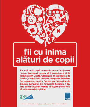 Prin vanzarea simbolului campaniei in cadrul retelei de farmacii Sensiblu, 6 ONG-uri vor primi acum sprijin pentru tratarea problemelor de sanatate grave ale copiilor din Romania.