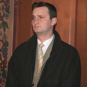Tati meu ma iubeste tare mult, incat a fost de fata atunci cand am venit eu pe lume. Iar in poza asta se uita la nenea parintele cum imi facea baita in apa sfintita…oare la ce se gandeste…?