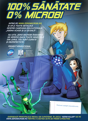 Mai mult decat atat, pentru copiii din clasele primare, pentru profesori si parinti, a fost creata platforma online www.zeromicrobi.ro, care include informatii despre concursul in scoli, precum si un joc educativ, Germ Killer, menit sa faciliteze intelegerea nevoii pentru un mediu curat, igienizat, ferit in totalitate, de microbi.