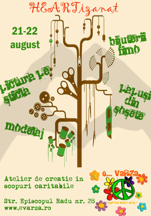 Pe 21 si 22 august sunteti invitati cu mic, cu mare, la Heartizanat! Atelierele creative care se vor desfasura pe teresa clubului E…Varza', incepand cu ora 14 – au un dublu scop: distractiv si caritabil.