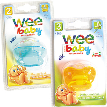 Wee Suzetele anatomice Wee, prevazute cu supape speciale cu aer. Foarte apreciate si de catre… parinti, suzetele previn, conform unor studii, riscul sindromului de moarte subita.